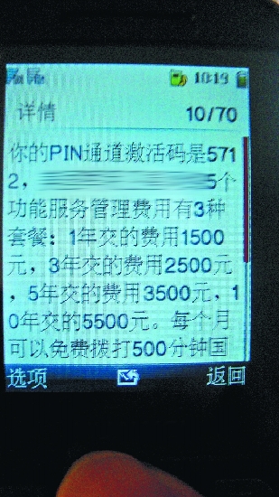 客服人員:“得開通網絡才能用,最少1500元一年,給你發的短信上不是都寫了嗎?”