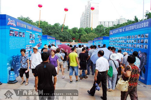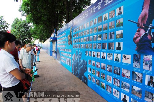 市民在南寧市朝陽廣場觀看南寧公安打擊違法犯罪成果展示。廣西新聞網記者 潘曉明 攝
