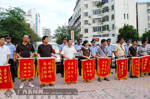 車主送錦旗向警方表示感謝。 廣西新聞網記者 潘曉明 攝