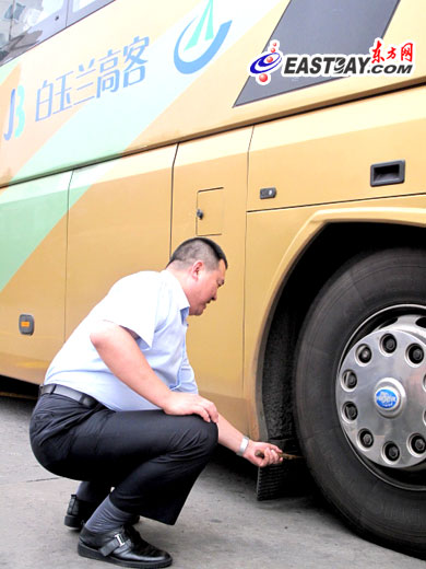 滿在并告訴東方網記者,為了保障乘客的生命安全,每次出車前司機都會對整車的車況進行檢驗,包括調校輪胎、門泵、實時GPS定位系統、發動機、車燈等是否正常運作。“在司機檢查之后,還會由專門的車況安檢員進行復檢,雙重檢查確保了車輛的行車安全,也讓乘客的生命安全有保障。”
